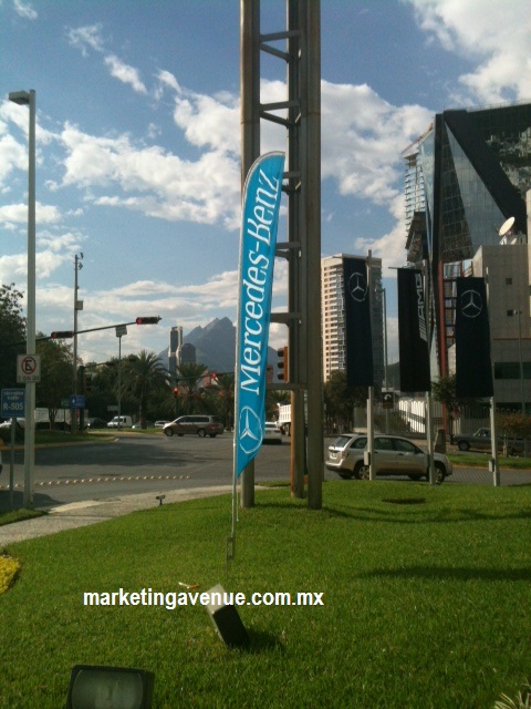 Brandera Publicitaria Marca Mercedes Benz Azul